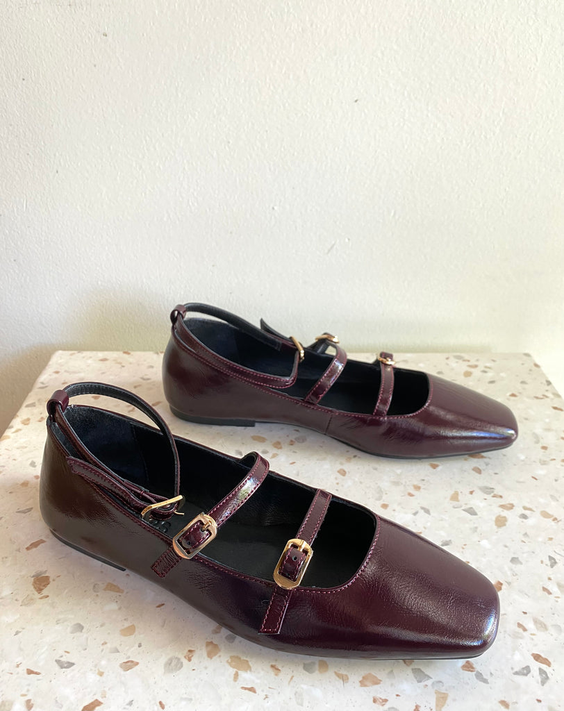 Ateliers - Strappy Mary Jane Flats in Bordo