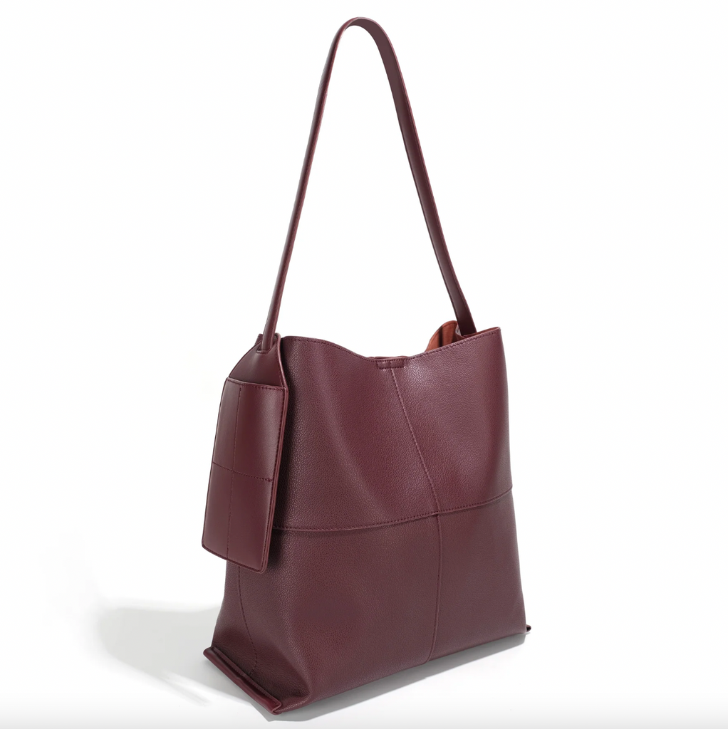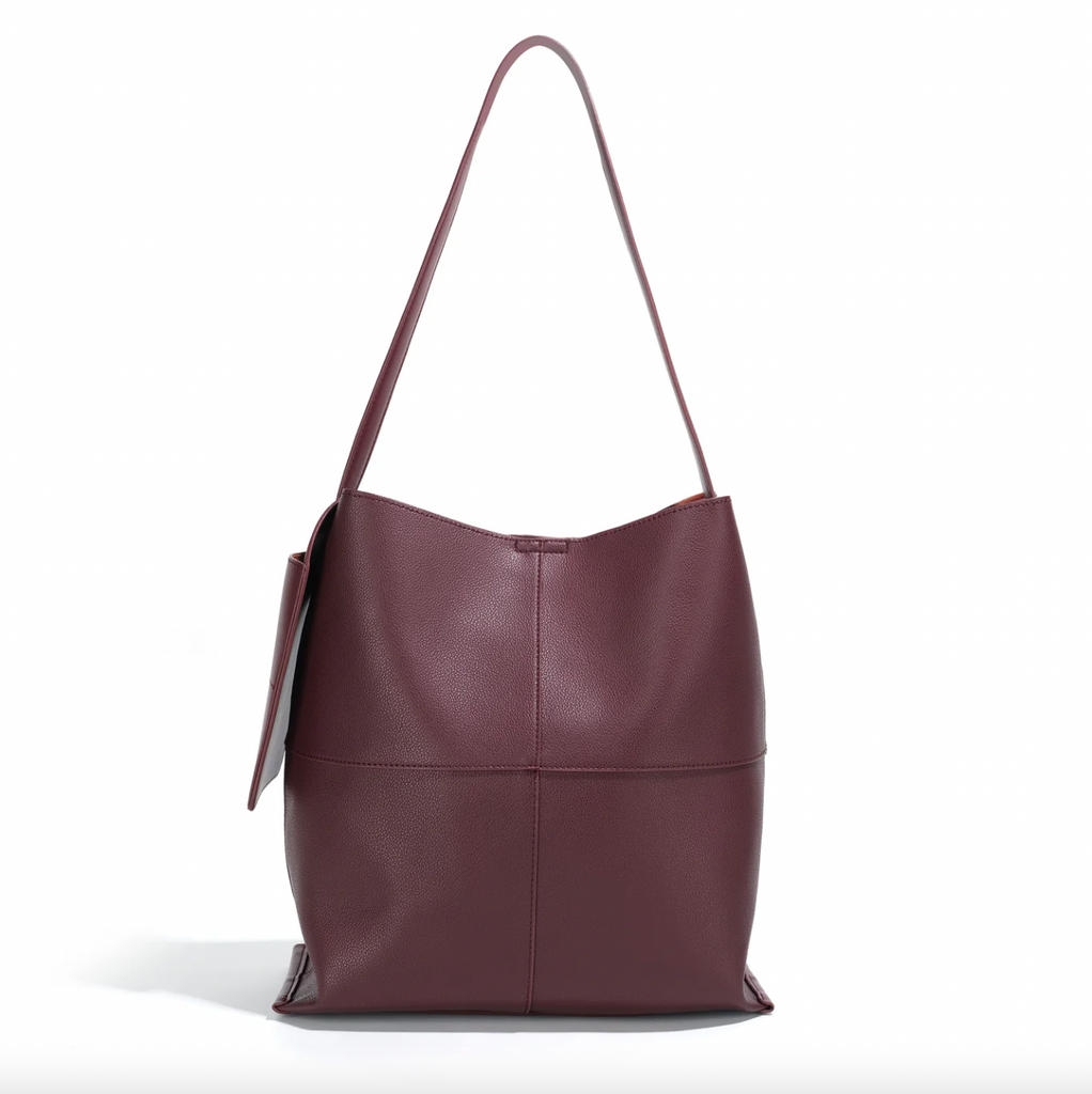 The interior is made with vegan suede lining. This tote features a removable zipped pouch and Co-Lab's signature padded cell phone pocket to keep your phone safe!
