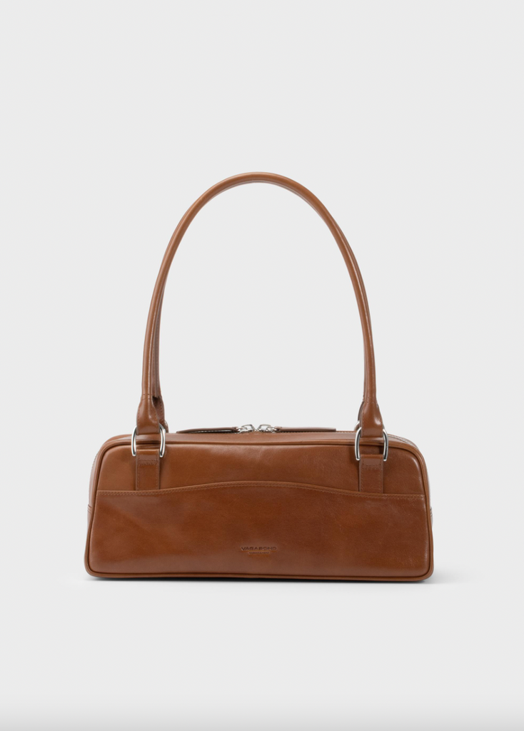 The Nomi Mini is Vagabond Shoemakers contemporary take on the classic bowling bag. The style is crafted from cognac-brown leather and features piping around the edges.