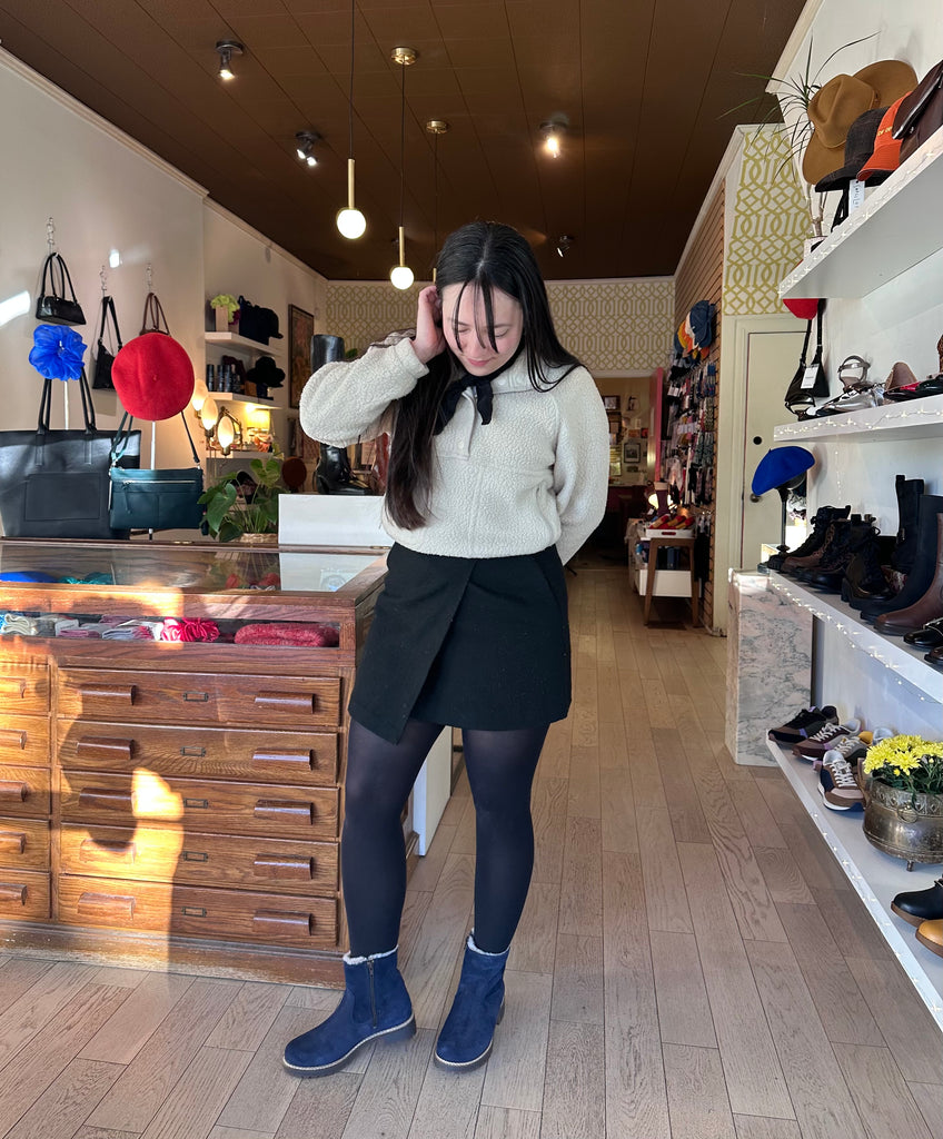 Gorgeous waterproof suede winter boots from Canada's Bos & Co. A combo of plush faux-fur and merino wool makes this bootie extra cozy and comfortable, whatever the forecast. Comfort rated to -25C.